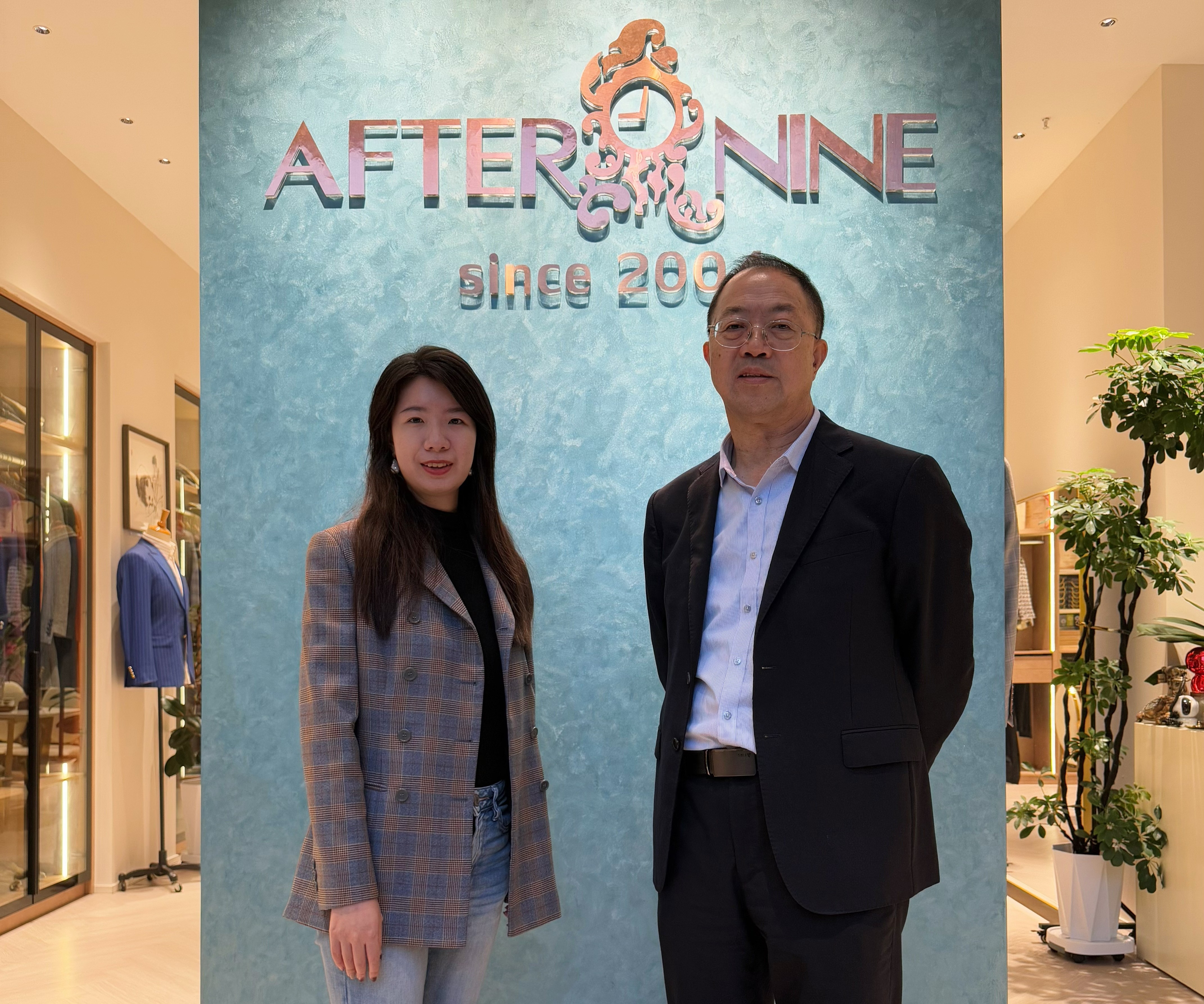 2025年11月16日,中国商业文化研究会商业品牌工作委员会执行会长、《乡村产业振兴概论》主编、中关村人才协会城乡产业振兴专委会会长、商业品牌研究院院长钱先国先生专程走访了位于杭州的AfterNine高端定制品牌,进行了深入的考察与交流。AfterNine定制品牌杭州主理人许雪蓉女士代表品牌予以热情接待,双方就中国高端定制服务的发展、个人品牌形象管理以及商业品牌文化的深度构建等议题展开了富有成效的探讨。
